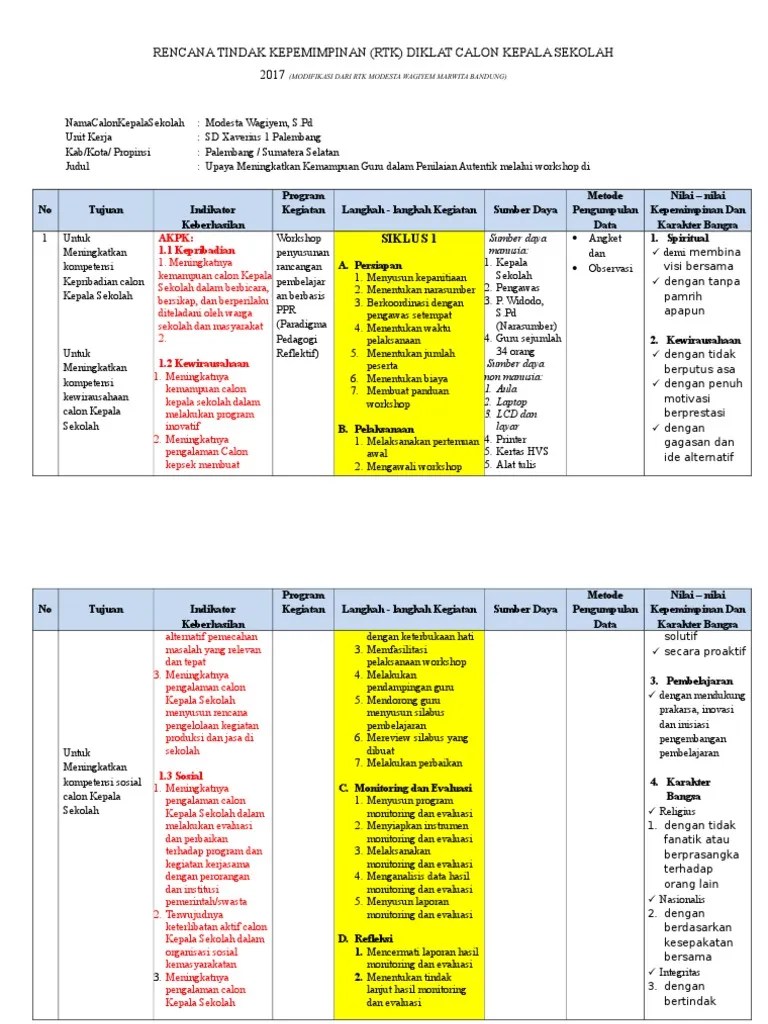 Contoh Rtk Calon Kepala Sekolah - Materi Dan Laporan Diklat Calon Kepala Sekolah Al Maududy / Kegiatan ojl penting bagi peserta diklat calon kepala sekolah untuk.